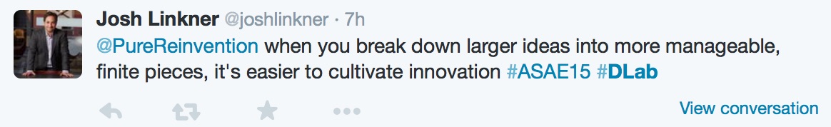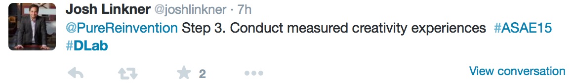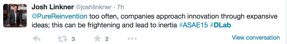 PureReinvention had the honor of hosing a Twitter chat with Josh Linkner (@joshlinkner) during the height of the ASAE conference in Detroit in August. Participants asked Josh about what the Detroit experience can offer associations and where in Detroit can you see reinvention in action. Josh also shared some tips on how to manage change experiments as well as his thoughts on the future of association conferences.